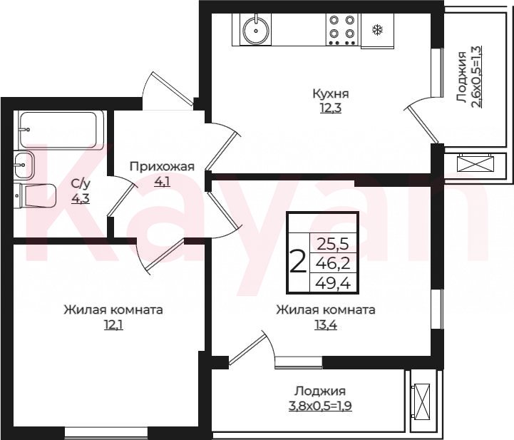 Продажа 2-комн. квартиры, 46.2 кв.м