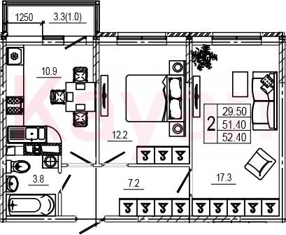 Продажа 2-комн. квартиры, 51.5 кв.м