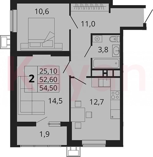 Продажа 2-комн. квартиры, 52.6 кв.м
