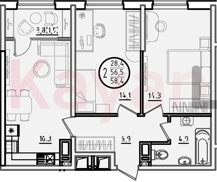 Продажа 2-комн. квартиры, 56.5 кв.м