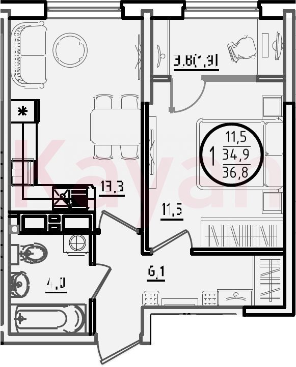 Продажа 2-комн. квартиры, 34.9 кв.м