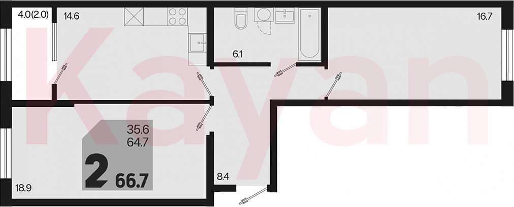 Продажа 2-комн. квартиры, 64.7 кв.м