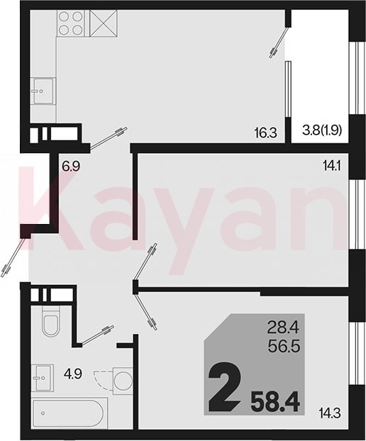 Продажа 2-комн. квартиры, 56.5 кв.м