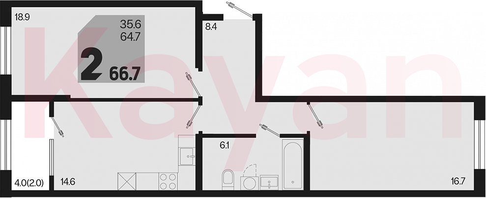 Продажа 2-комн. квартиры, 64.7 кв.м