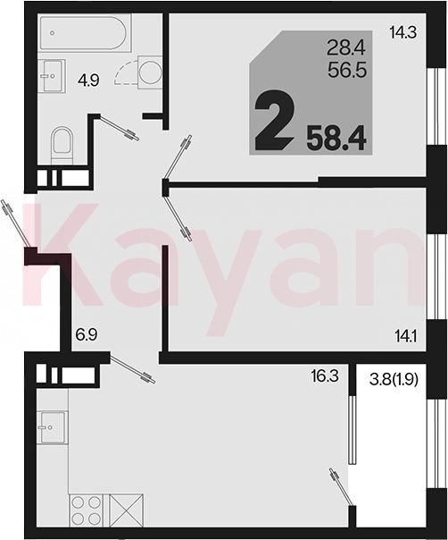 Продажа 2-комн. квартиры, 56.5 кв.м