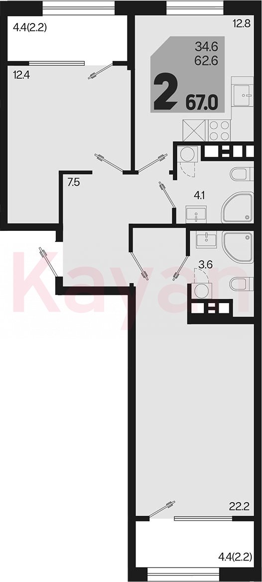 Продажа 2-комн. квартиры, 62.6 кв.м