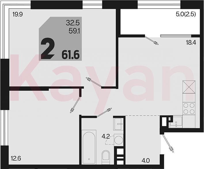 Продажа 2-комн. квартиры, 59.1 кв.м