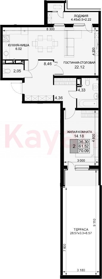 Продажа 2-комн. квартиры, 59.3 кв.м