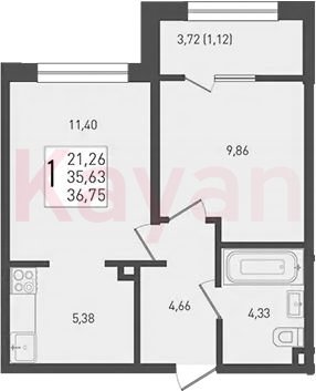 Продажа 2-комн. квартиры, 35.63 кв.м