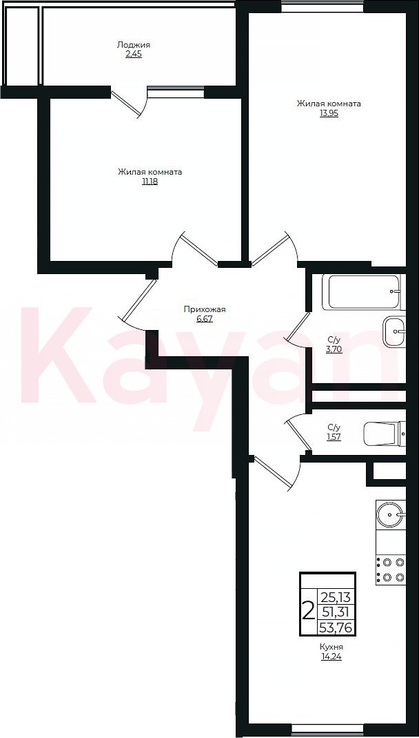 Продажа 2-комн. квартиры, 51.31 кв.м