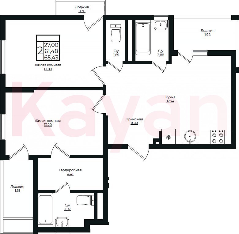Продажа 2-комн. квартиры, 61.48 кв.м