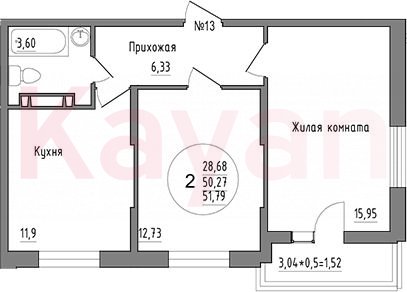 Продажа 2-комн. квартиры, 50.27 кв.м