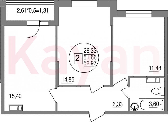 Продажа 2-комн. квартиры, 51.66 кв.м