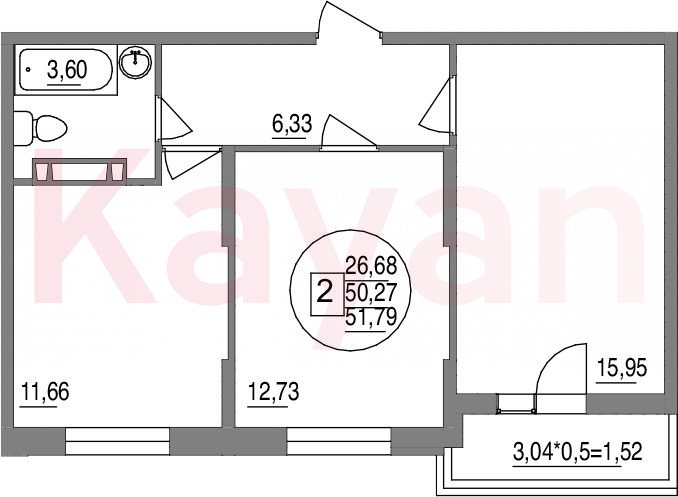 Продажа 2-комн. квартиры, 50.27 кв.м