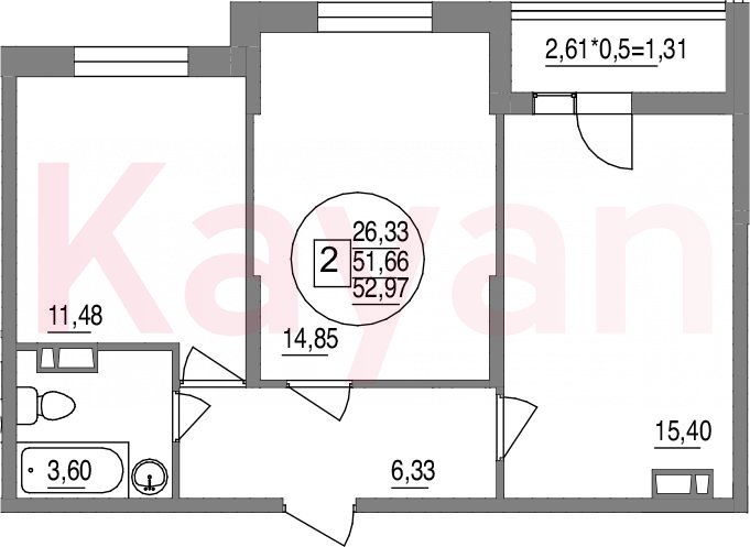 Продажа 2-комн. квартиры, 51.66 кв.м