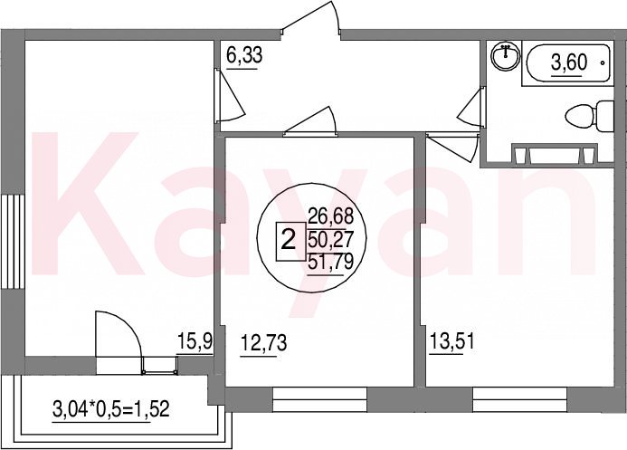Продажа 2-комн. квартиры, 50.27 кв.м