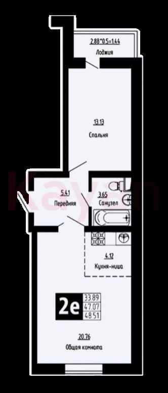 Продажа 2-комн. квартиры, 47.07 кв.м