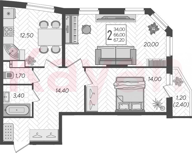 Продажа 2-комн. квартиры, 66 кв.м