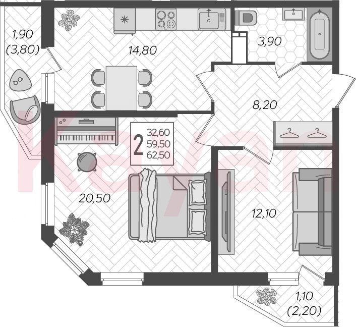 Продажа 2-комн. квартиры, 59.5 кв.м