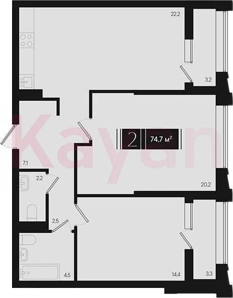Продажа 2-комн. квартиры, 73.05 кв.м