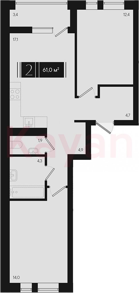 Продажа 2-комн. квартиры, 59.3 кв.м
