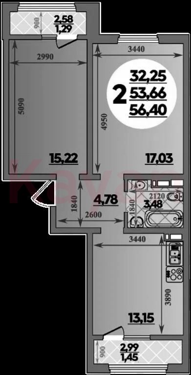 Продажа 2-комн. квартиры, 53.66 кв.м