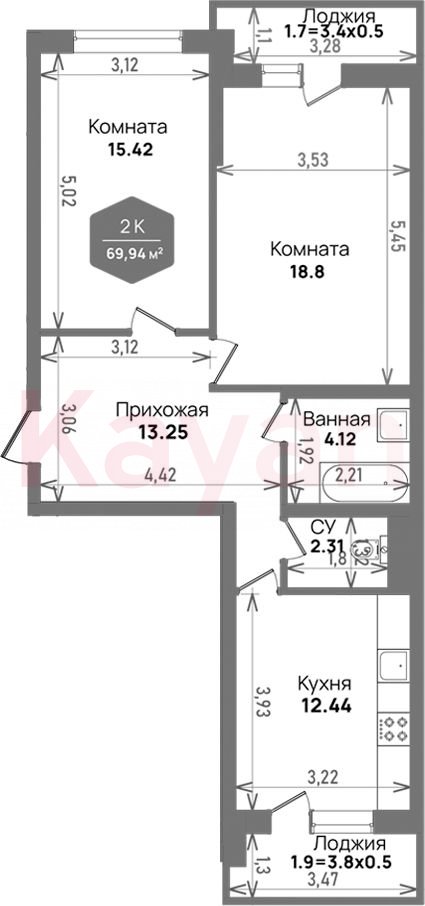 Продажа 2-комн. квартиры, 66.34 кв.м