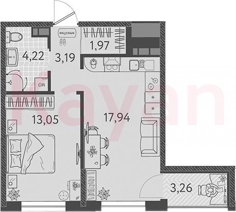 Квартира в ЖК «Друзья» (Семья) литер 7 очередь 2, Монолитный, 2 к.кв., 40.37 кв.м., 9/9, высота потолков: 2.85 м, жилая площадь: 13.04 кв.м., возможна ипотека, возможна военная ипотека, площадь кухни 17.94 кв.м.,