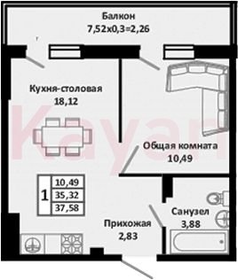 Продажа 2-комн. квартиры, 35.32 кв.м