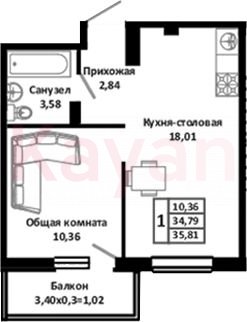 Продажа 2-комн. квартиры, 34.79 кв.м