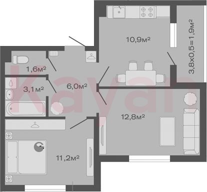 Продажа 2-комн. квартиры, 45.6 кв.м