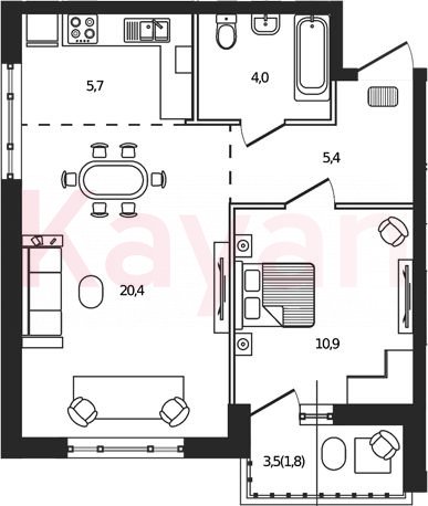 Продажа 2-комн. квартиры, 46.3 кв.м