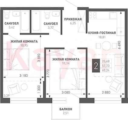 Продажа 2-комн. квартиры, 54.34 кв.м