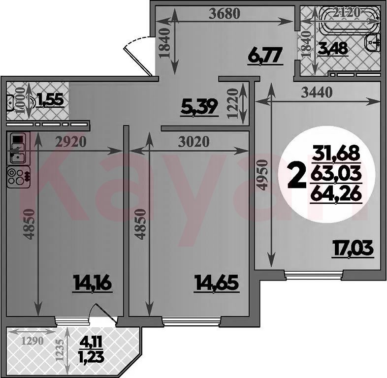 Продажа 2-комн. квартиры, 63.03 кв.м