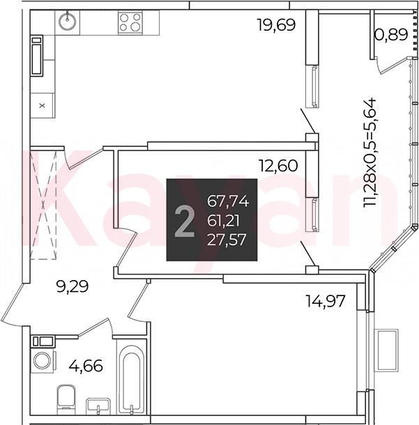 Продажа 2-комн. квартиры, 61.21 кв.м