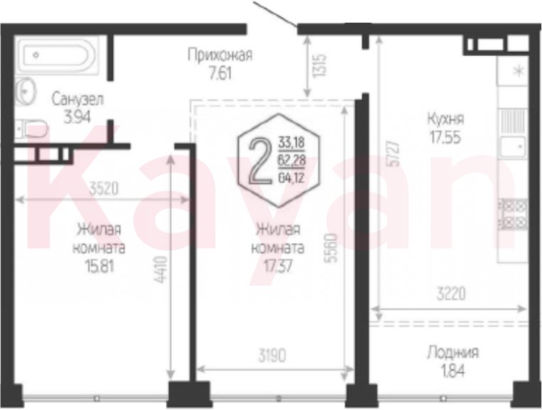 Продажа 2-комн. квартиры, 62.28 кв.м