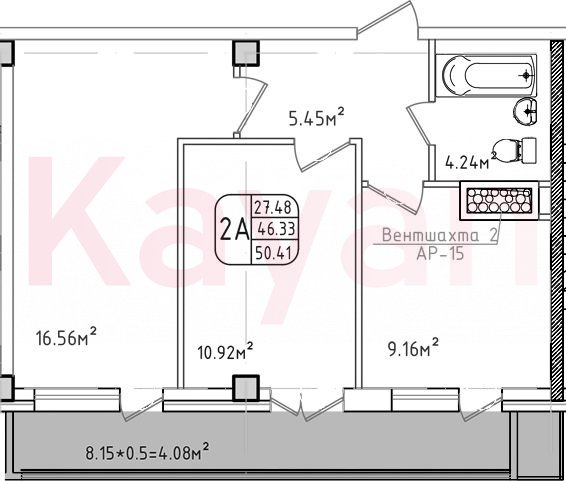 Продажа 2-комн. квартиры, 46.33 кв.м