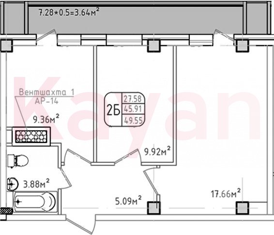 Продажа 2-комн. квартиры, 45.91 кв.м