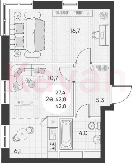 Продажа 2-комн. квартиры, 42.8 кв.м