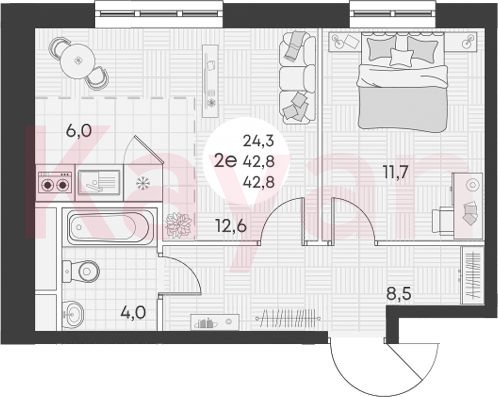 Продажа 2-комн. квартиры, 42.8 кв.м