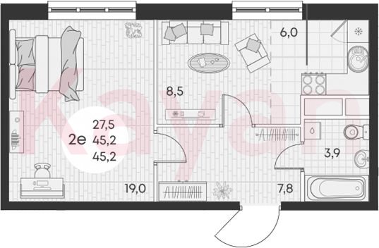Продажа 2-комн. квартиры, 45.2 кв.м