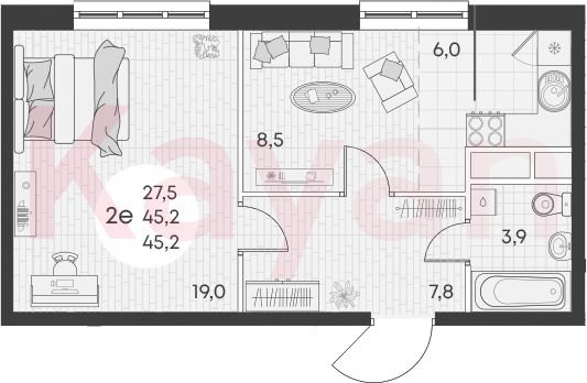 Продажа 2-комн. квартиры, 45.2 кв.м