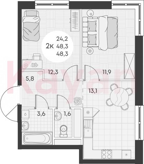 Продажа 2-комн. квартиры, 48.3 кв.м
