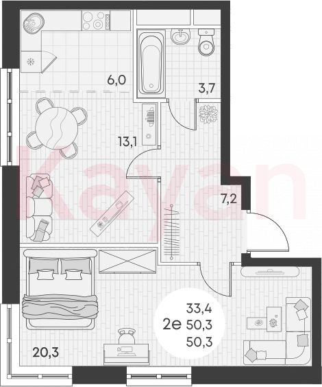 Продажа 2-комн. квартиры, 50.3 кв.м