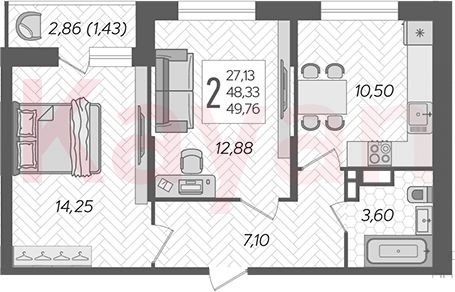 Продажа 2-комн. квартиры, 48.33 кв.м