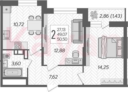 Продажа 2-комн. квартиры, 49.07 кв.м