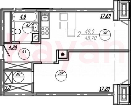 Квартира в ЖК «Скала» (СЗ Твое место) литер 1 очередь 1, Монолитный, 2 к.кв., 47.35 кв.м., 14/17, высота потолков: 2.7 м, жилая площадь: 17.2 кв.м., возможна ипотека, площадь кухни 17.6 кв.м.,