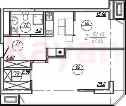 Продажа 2-комн. квартиры, 55.45 кв.м