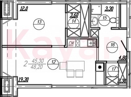 Продажа 2-комн. квартиры, 46.75 кв.м