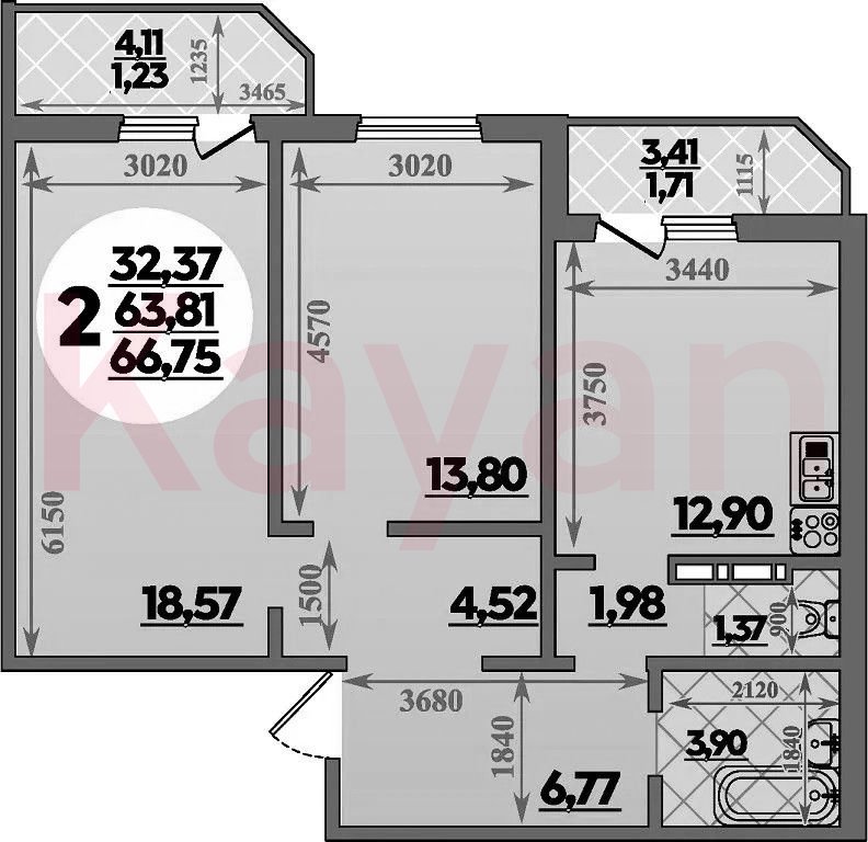 Продажа 2-комн. квартиры, 63.81 кв.м